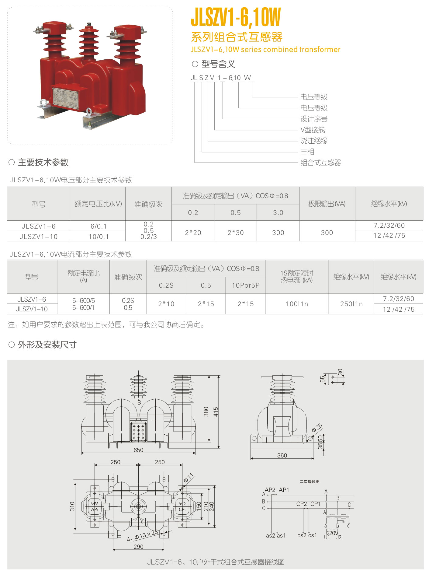 JLSZV1-6, 10W系列組合式互感器